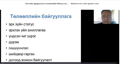 2020 онд батлагдсан Монгол Улсын засаг захиргаа, нутаг дэвсгэрийн нэгж, түүний удирдлагын тухай хуулийн 79 дүгээр зүйлд Нутгийн өөрийн удирдлагын байгууллагуудын нийтлэг ашиг сонирхлыг илэрхийлэх зэрэг чиг үүрэг бүхий төлөөллийн байгууллагатай байх шинэ зохицуулалт тусгагдсан. Уг эрх зүйн зохицуулалттай холбоотой асуудлаар судлаач, доктор С.Сүхбаатар судалгаа хийсэн бөгөөд судалгааны үр дүн, санал зөвлөмжийг танилцуулах цахим хэлэлцүүлэг өнөөдөр (2021.06.21) боллоо. Хэлэлцүүлэгт аймаг, дүүрэг, сумдын иргэдийн Төлөөлөгчдийн Хурал, нутгийн удирдлагын чиглэлээр үйл ажиллагаа явуулдаг төрийн бус байгууллагууд болон судлаачид оролцож санал солилцов.