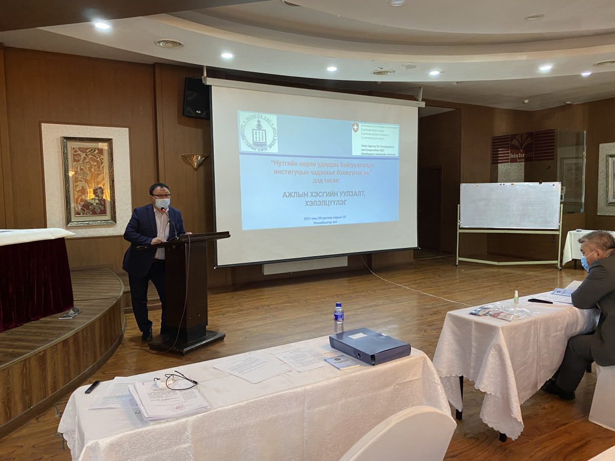 Швейцарын хөгжлийн агентлагийн дэмжлэгтэйгээр Засгийн газрын Хэрэг эрхлэх газар хэрэгжүүлж буй “Нутгийн өөрөө удирдах байгууллагын чадавхыг бэхжүүлэх” төслийн хүрээнд аймаг, нийслэлийн иргэдийн Төлөөлөгчдийн Хурлын ажлын алба, Засаг даргын Тамгын газрын бүтэц, орон тооны хязгаарыг судлан санал боловсруулах Ажлын хэсгийн хурал боллоо.